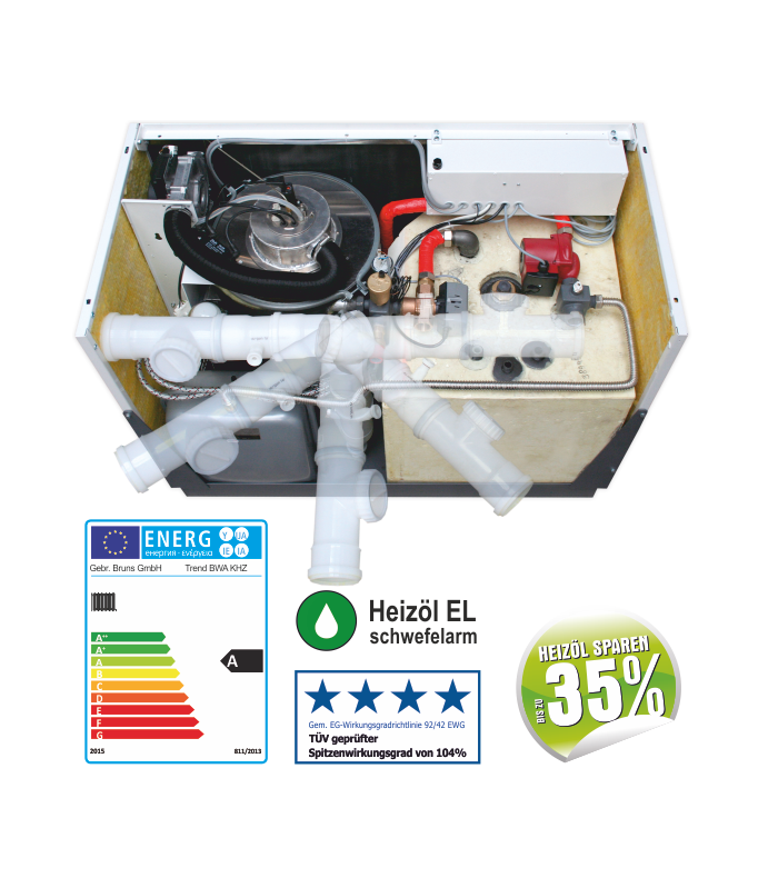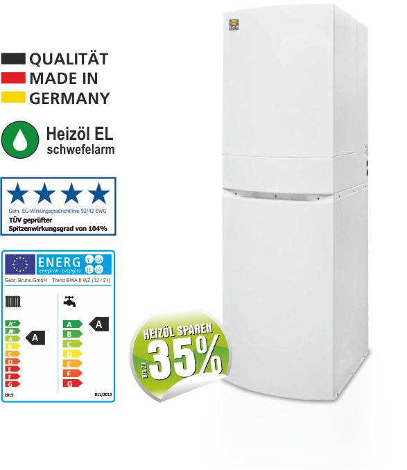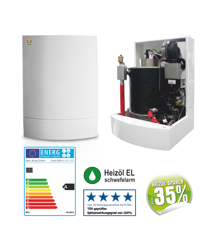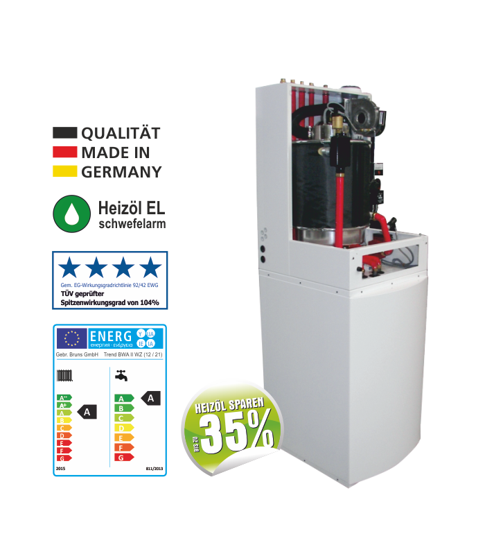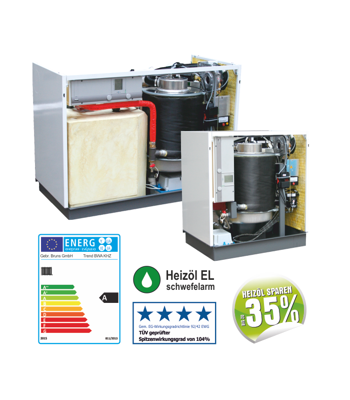 - Neueste Brennwerttechnik für bis zu 35% Einsparung von Öl oder Gas